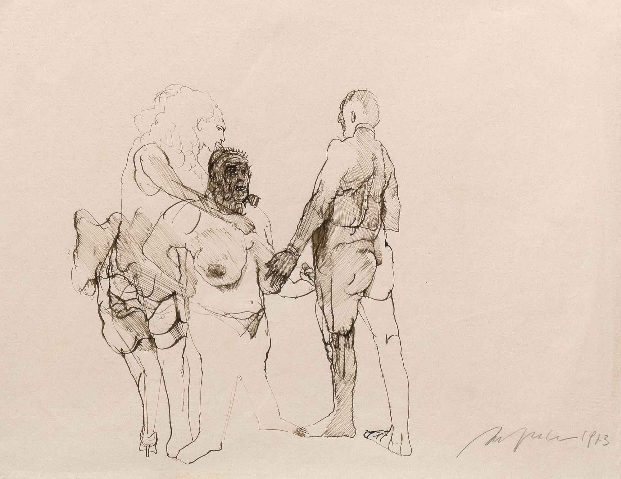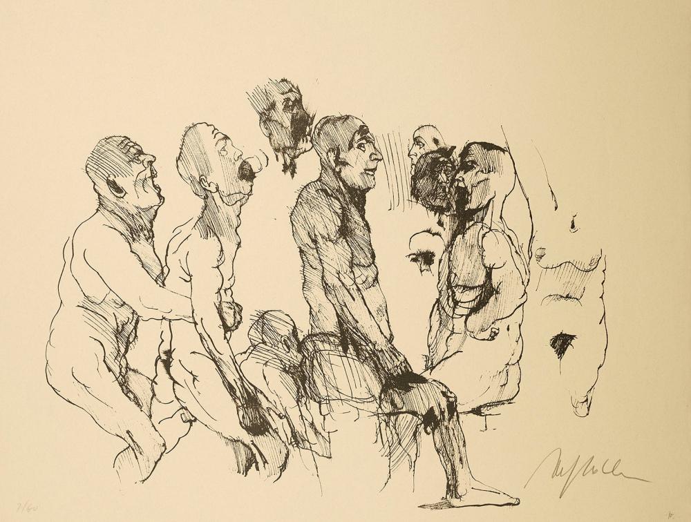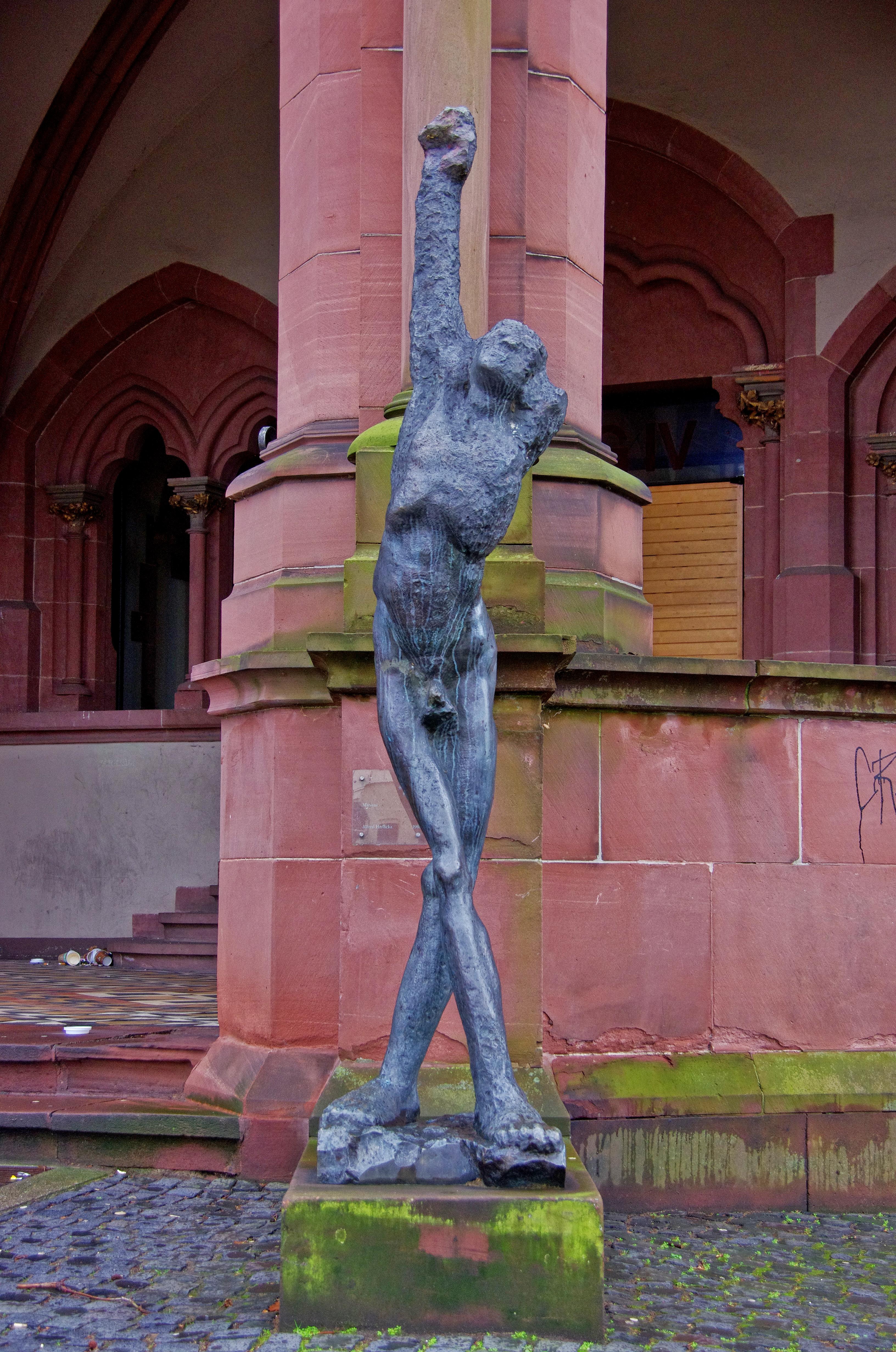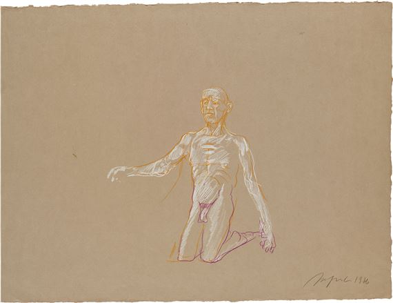 Alfred Hrdlicka (Viena Austria, 1928-2009) fue un pintor, dibujante, grabador y escultor, discípulo de Fritz Wotruba. Miembro del Partido Comunista y conocido militante contra el fascismo, la violencia y la guerra, nos muestra obras con un crudo estilo expresionista, formas distorsionadas para hacer prevalecer, ante todo, la emoción.