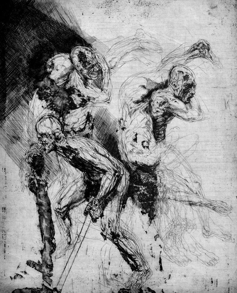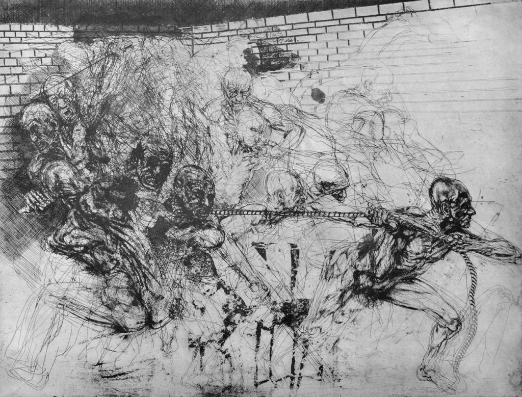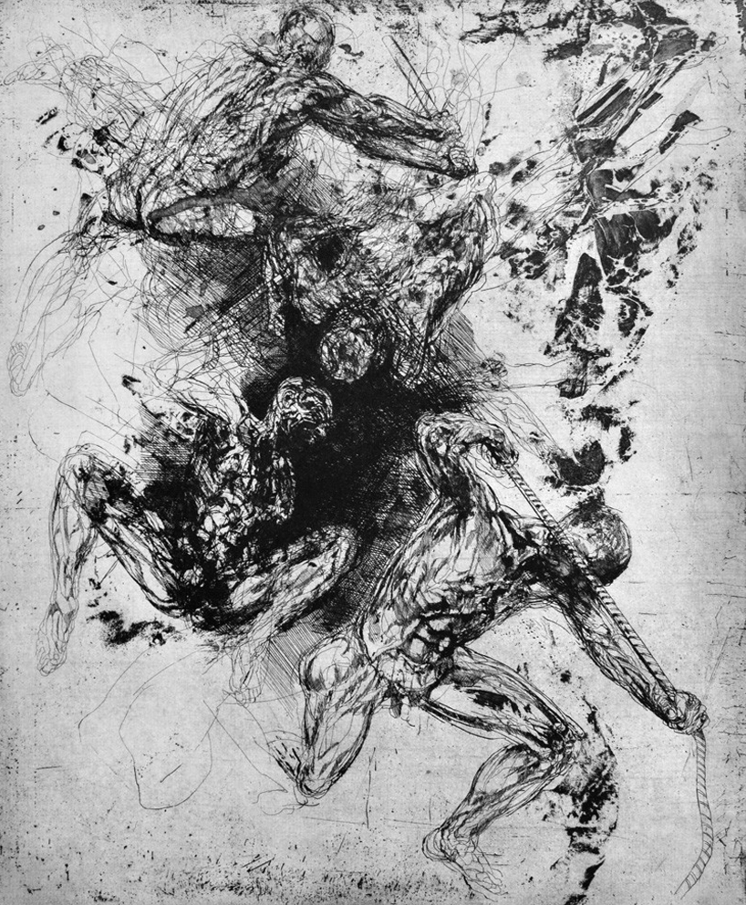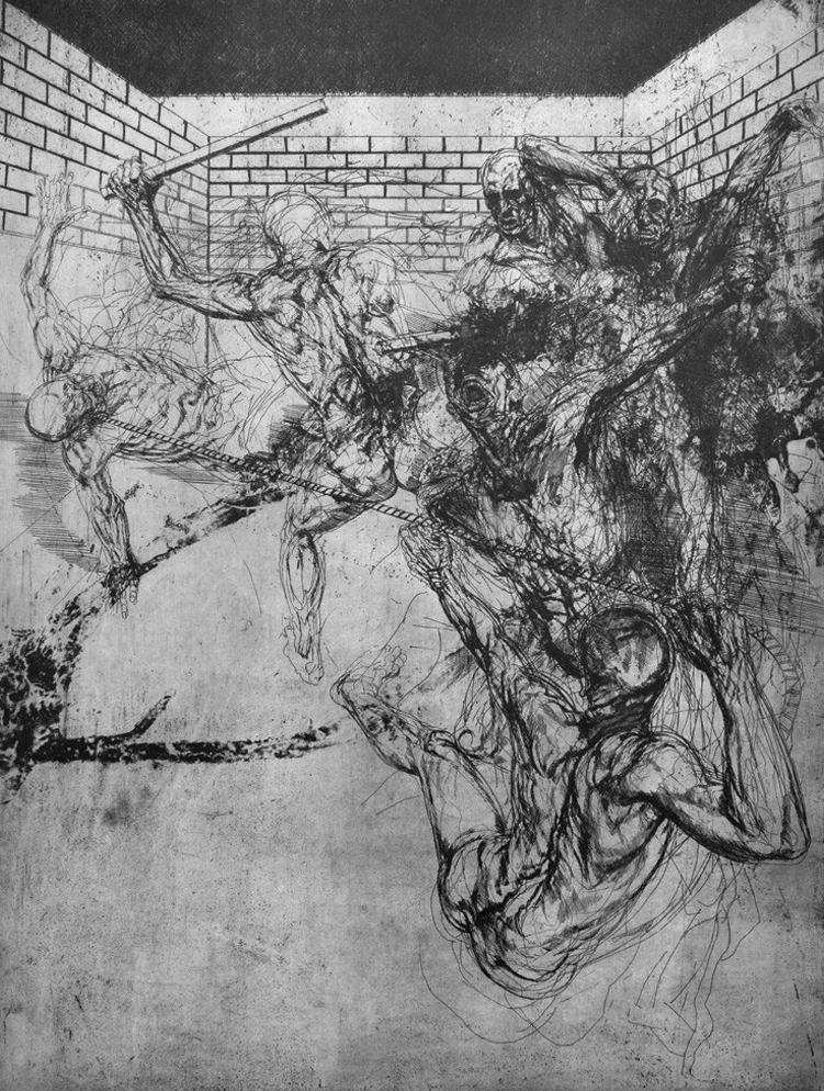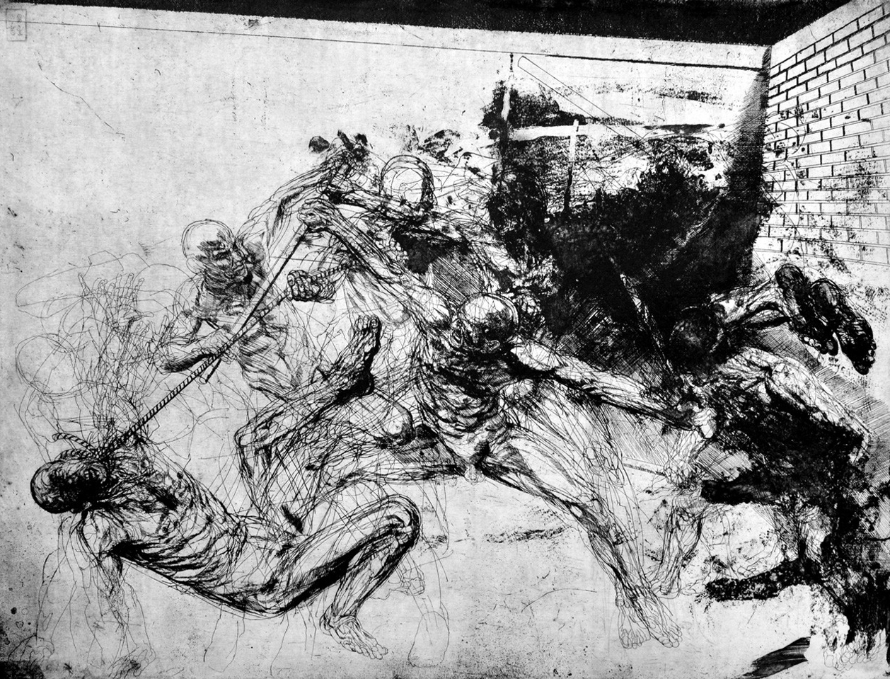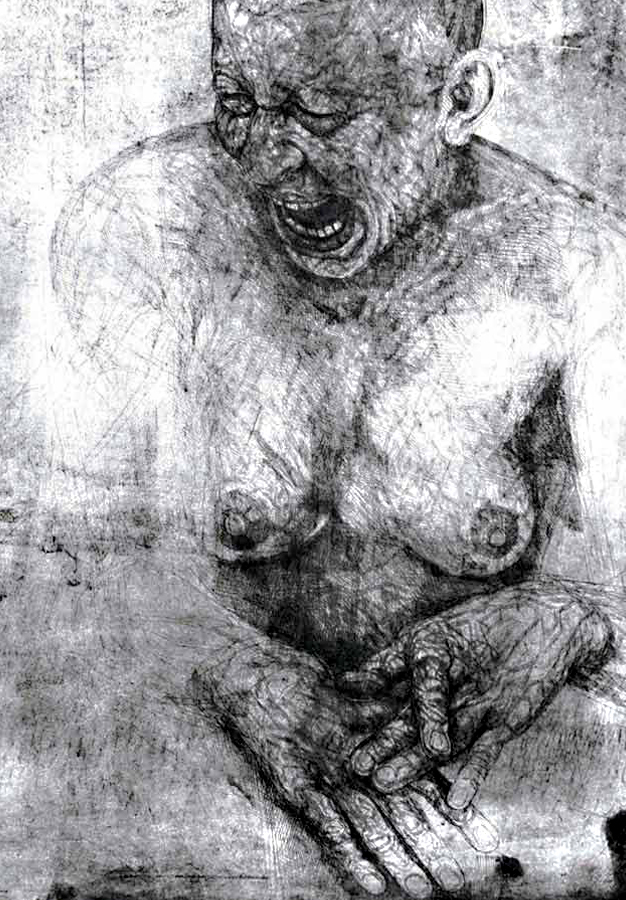 Si existe un artista al que podamos considerar «hecho a sí mismo», creo que este es Jirí Sozansky (Praga, Chequia, 1946), el que fue un joven rebelde, marginal y sin recursos. Hasta 1967 en el que ingresó a sus expensas en la Academia de Bellas Artes, su mejor trabajo había sido el de albañil. Los acontecimientos sociales y políticos de 1969 supusieron para éste un punto de inflexión. Se interesaba en describir el sufrimiento humano en un entorno que pretendía mostrar sólo los postulados del realismo socialista. Sin ingresos, en muchas ocasiones lo ayudó económicamente el escultor Olbran Zoubek, del que se hizo amigo. Luchó siempre contra el sistema comunista, y su activismo quedó reflejado en la temática de una obra que se centra en el dolor, la muerte y los campos de concentración. Su abundante producción voy a mostrarla en dos partes. En esta primera las expresiones pictóricas y gráficas y, en una próxima entrada, la obra escultórica y las instalaciones.