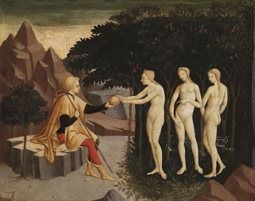Domenico Veneziano (Venecia Italia, 1410-1461) es un pintor relativamente poco conocido del Quattrocento italiano. No es del todo seguro su lugar y fecha de nacimiento pero si que estuvo vinculado a la escuela florentina y que se vió influenciado por el tratamiento de las figuras y espacio de Masaccio y Paolo Uccello. En su obra se destaca el notable tratamiento del color. No dispongo de muchas muestras de sus representaciones de desnudos, aunque algunos de los mismos son notables. Destaco su «San Juan en el desierto» en el que el santo se nos muestra cambiando sus ricas ropas por un tosco abrigo de pelo de camello.