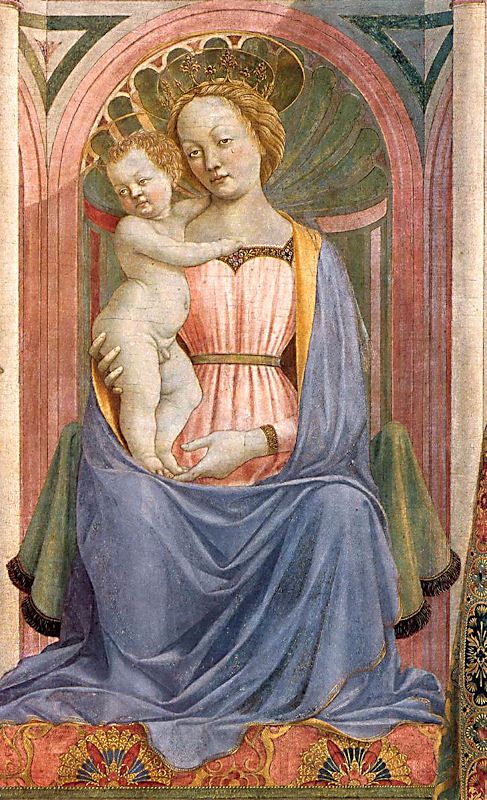 Me resulta particularmente atractiva esta imagen de la Virgen y el Niño. El tratamiento de la figura femenina recuerda todavía el arte gótico, pero la disposición del cuerpo de Jesús es claramente renacentista: