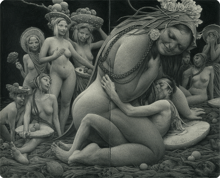 «A la vanguardia de la ilustración clásica y a la vez alejado de los artistas conceptuales, ha logrado mantenerse en el dulce limbo de los ilustradores surrealistas, donde todo está permitido. Un artista polifónico, podríamos decir, amante del movimiento y el primitivismo, y conectado con el mundo de la estética adivinatoria religiosa del sur de Asia. Deleita la vista con personajes magníficos y una técnica sublime, utilizando grafito, acrílico y óleo sobre lienzo o papel, con escaso trabajo digital, solo pincel, lápiz y una imaginación poshumanista».