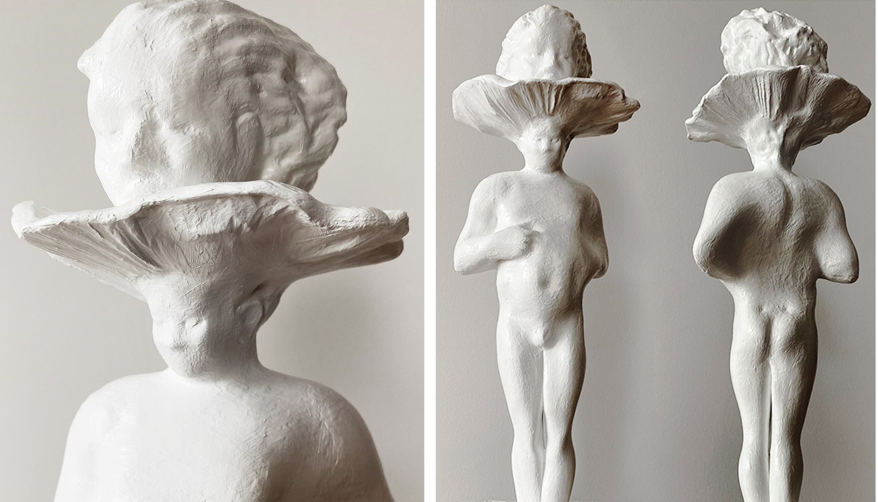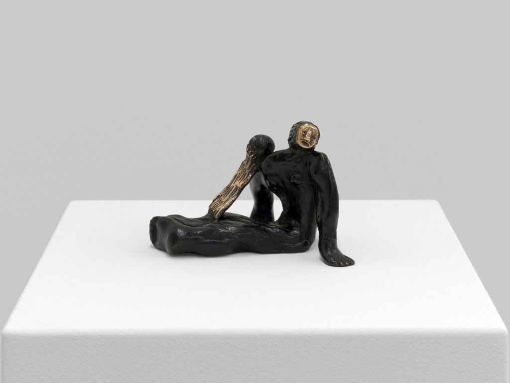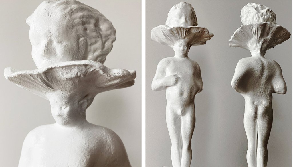 «Las formas y figuras escultóricas de Aks Misyuta, que a menudo representan figuras en situaciones aparentemente imposibles, enigmáticas o inventadas, a veces parecen talladas en materia sólida, y son reconocibles al instante. Si bien no están inspiradas en personas reales, estas figuras son autorretratos y capturan las ambigüedades del estado psicológico de los sujetos. Expresivas, grotescas, descomunales, carnosas y, sin embargo, extrañamente vulnerables, se mueven a la deriva en entornos sombríos, marcados por sombras y contrastes de luz, creando un puente entre la sensación de agitación interna y el caos externo. Su apariencia inflable es una forma de representar nuestra naturaleza precaria: para el artista, «a veces basta un pequeño pinchazo para destruir»».