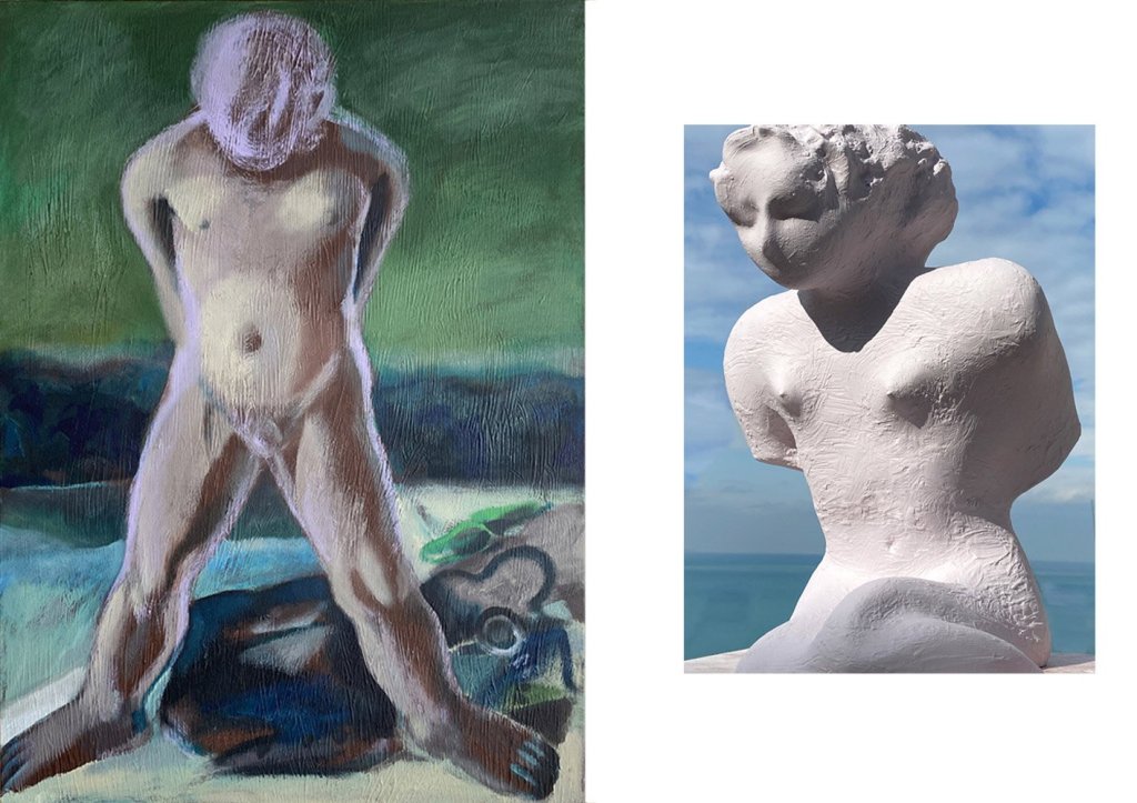 Aks Misyuta (Bryansk, Rusia, 1984) es una pintora y escultora que vive y trabaja en Estambul (Turquía). En esta artista parecen fusionarse pintura y escultura en formas volumétricas oscuras. La Galería Sébastien Bertrand nos comenta: