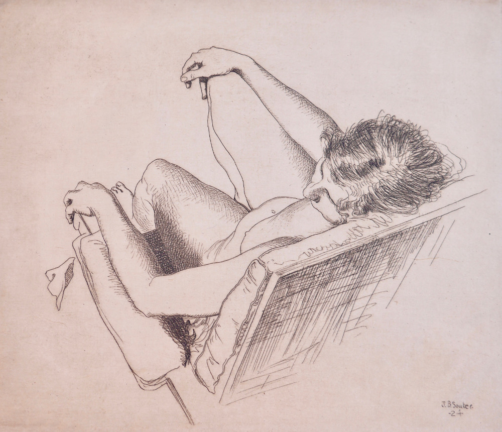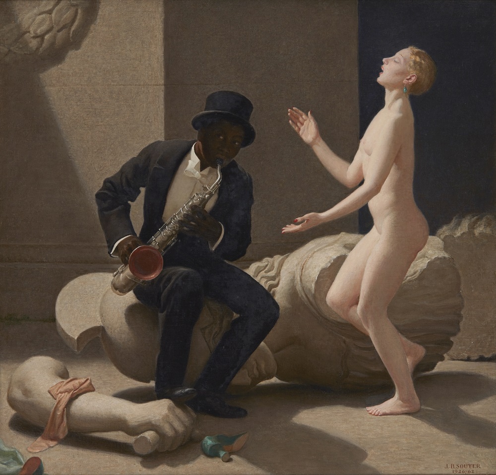 John Bulloch Souter o J.B. Souter (Aberdeen, Reino Unido, 1890-1972) fue un pintor, escultor y dibujante escocés que se distinguió como retratista. En su obra puede apreciarse su admiración por Velázquez, Chardin y Vermeer, cuyos trabajos conoció gracias a un viaje cultural por el continente europeo. Su pintura mas conocida – posiblemente por el escándalo que provocó en el Reino Unido -, es «The Breakdown», en la que observamos un músico negro que interpreta una pieza de jazz mientras una mujer desnuda parece bailar en trance: